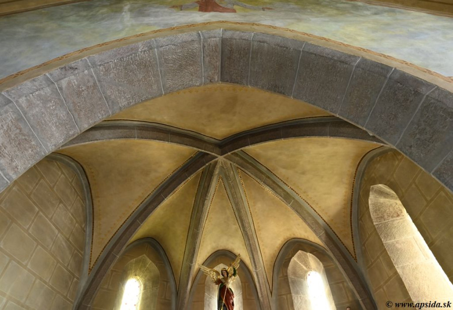 Zo stredovekého obdobia sa okrem hrubej stavby zachovala predovšetkým gotická klenba presbytéria a na severnej strane veže malé okienko s mníškou, podľa všetkého sekundárne zamurované.